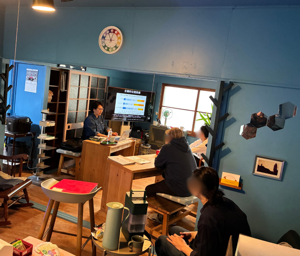 当日は、スタッフによる自己紹介や団体紹介のあと、会場であるはこにじのミニツアーを実施。もともと民家だった建物をリノベーションしてつくられた木の温もりあふれる空間には、押入れを改装した棚やボードゲームコーナーなど、心地よい工夫が随所に見られました。