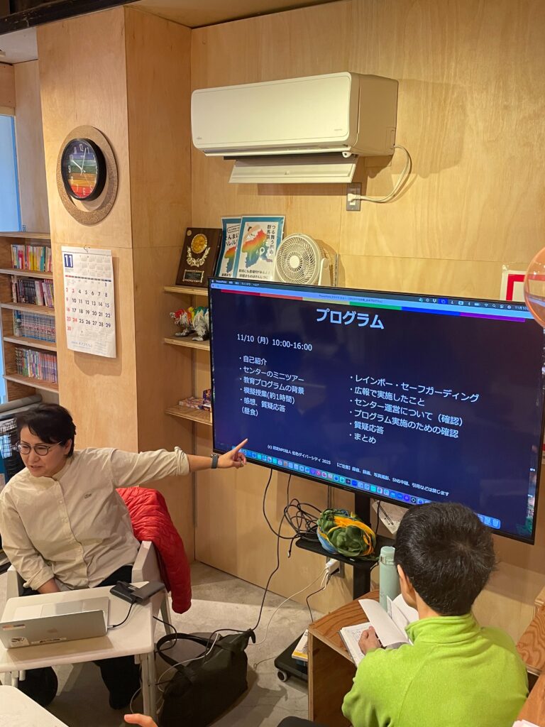 2025年11月10日、群馬県前橋市の「まちのほけんしつ」にて、プライドセンター大阪で実施している中高生向けLGBTQ+教育プログラムの模擬授業を行いました。