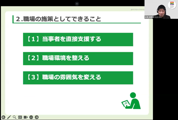 ヤマハ発動機株式会社様での人事担当者向けLGBTQ+研修に登壇 投稿日 2026年3月10日 著者 nijiiro_admin 実績・導入事例カテゴリ 企業・職場 ヤマハ発動機株式会社様にて、人事担当者向けLGBTQ+研修を実施しました。 2日間に分けて開催し、対面・オンライン(リアルタイム)・アーカイブ視聴のいずれかで約100名の皆様にご参加いただきました。 LGBTQ+に関する基礎知識から社会の状況、職場において人事の皆様ができることまで幅広く情報共有しました。グループや個人のワークでは、カミングアウト対応等について考えました。 ご参加いただいた皆様、ありがとうございました。